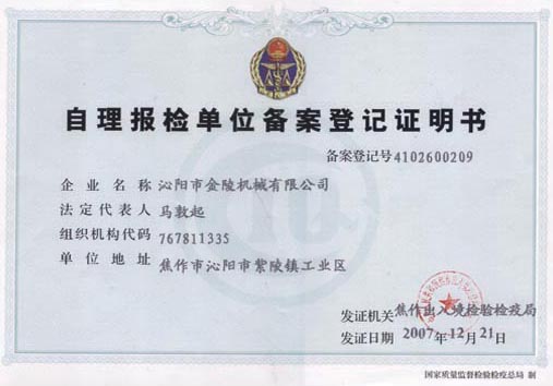自理報(bào)檢單位備案登記證明書