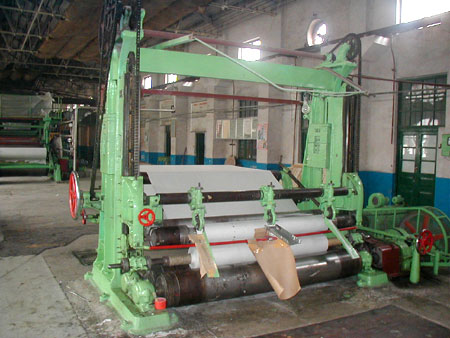 高速復(fù)卷機(jī),用于將紙機(jī)上初步卷成的原紙卷進(jìn)行縱切,復(fù)卷成符合寬度和緊度要求的成品紙卷。